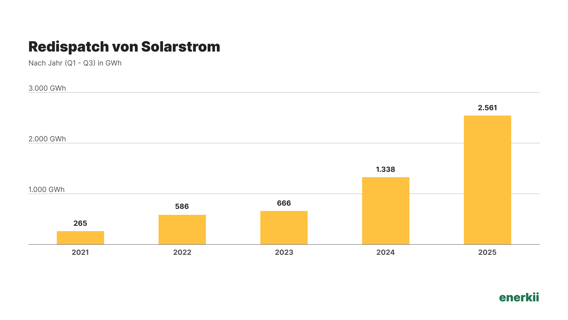 Interessanterweise ist der stagnierende Anteil von Grünstrom nur bedingt auf Drosselung durch die Netzbetreiber (Redispatch) zurückzuführen. 2024 wurden in den ersten neun Monaten 6,4 GWh an Solar- und Windstrom abgeregelt. Im gleichen Zeitraum 2025 lag der Wert mit 6,7 GWh nur ein wenig höher.